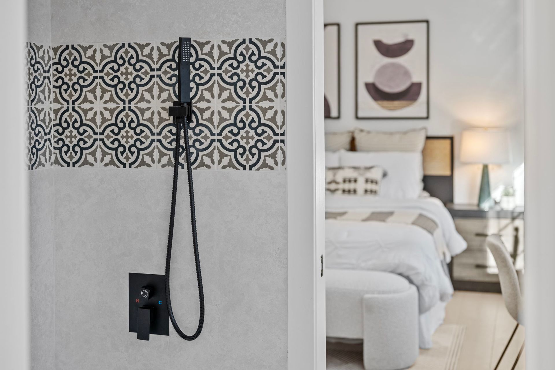 A private in-law suite provides additional flexibility for guests or extended family, walk-in spa like shower.